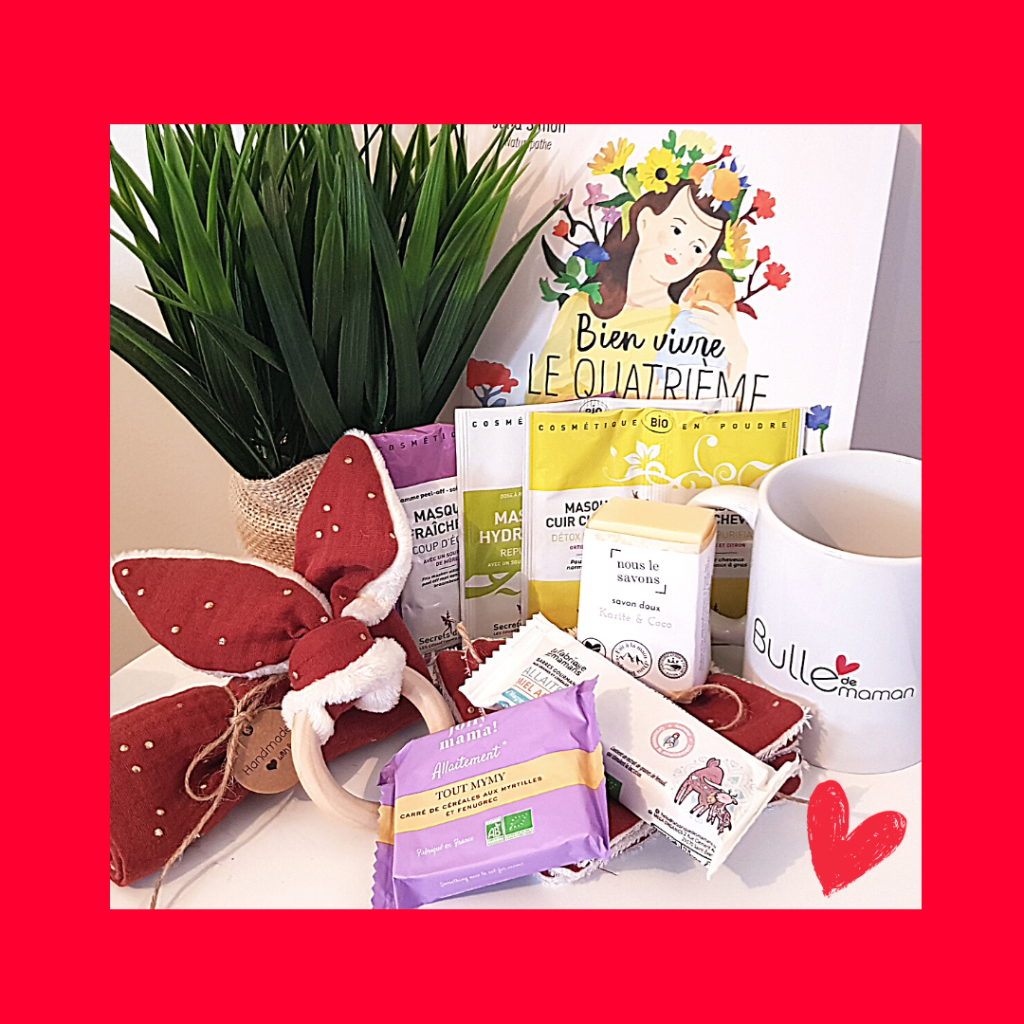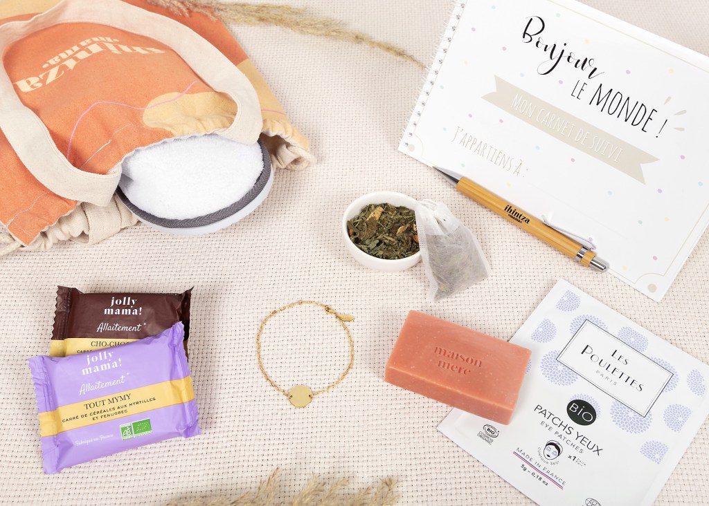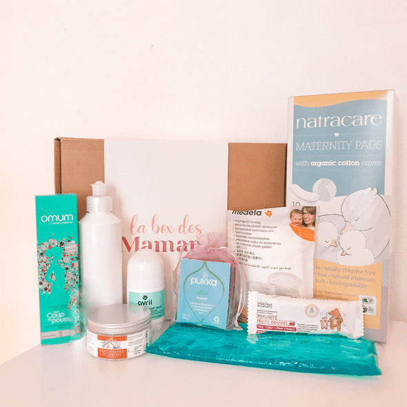 Qu’est-ce qu’on y trouve concrètement ? Des boxs dès le 4e mois de grossesse et qui s’étalent jusqu’au 3 mois de bébé, avec à chaque fois des soins, gourmandises et accessoires. Dans celles dédiées au post-partum, et suivant la formule choisie (à l’unité ou sur abonnement), on reçoit entre 6 et 10 produits pour maman et bébé : des gourmandises La Fabrique des mamans ou Jolly Mama, des masques cheveux Secrets des fées, des produits de la célèbre marque Omum (crème de jour, huile sèche, gel jambes légères…) mais aussi un joli bracelet en perle « Maman », des accessoires artisanaux pour son bébé (lange, carré nettoyant…) ou encore une belle bougie.