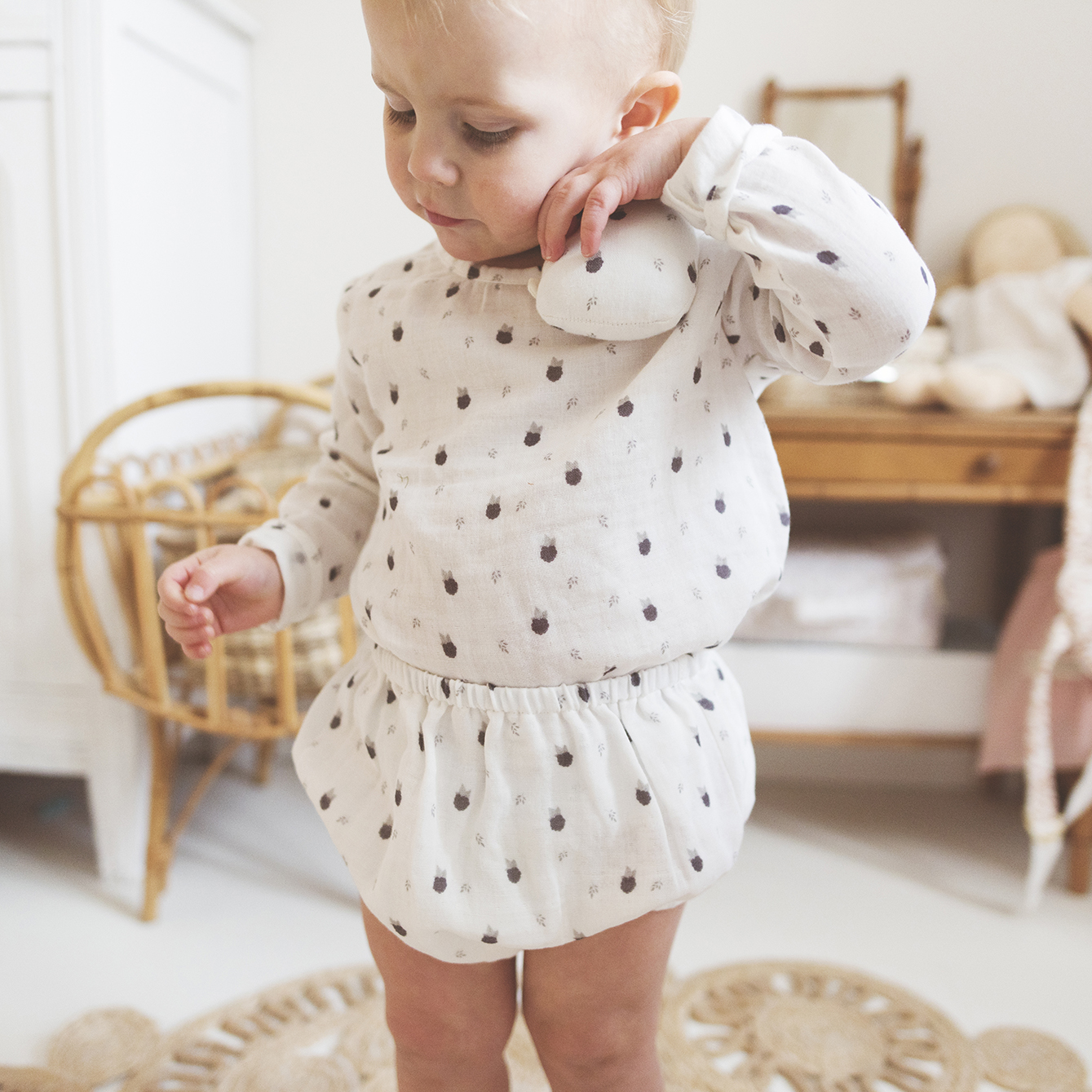 Pour les mamans de petites filles, difficile de passer à côté de la robe écrue Paloma, un modèle intemporel, avec de jolis pompons aux poignets. « Elle a beaucoup plu cet hiver et va rester de manière permanente dans mes collections », assure Laetitia. Quant aux femmes, mamans ou non, elles pourront craquer sur la belle blouse blanc cassé Muse, en gaz de coton très souple, avec elle aussi des petits pompons aux poignets.