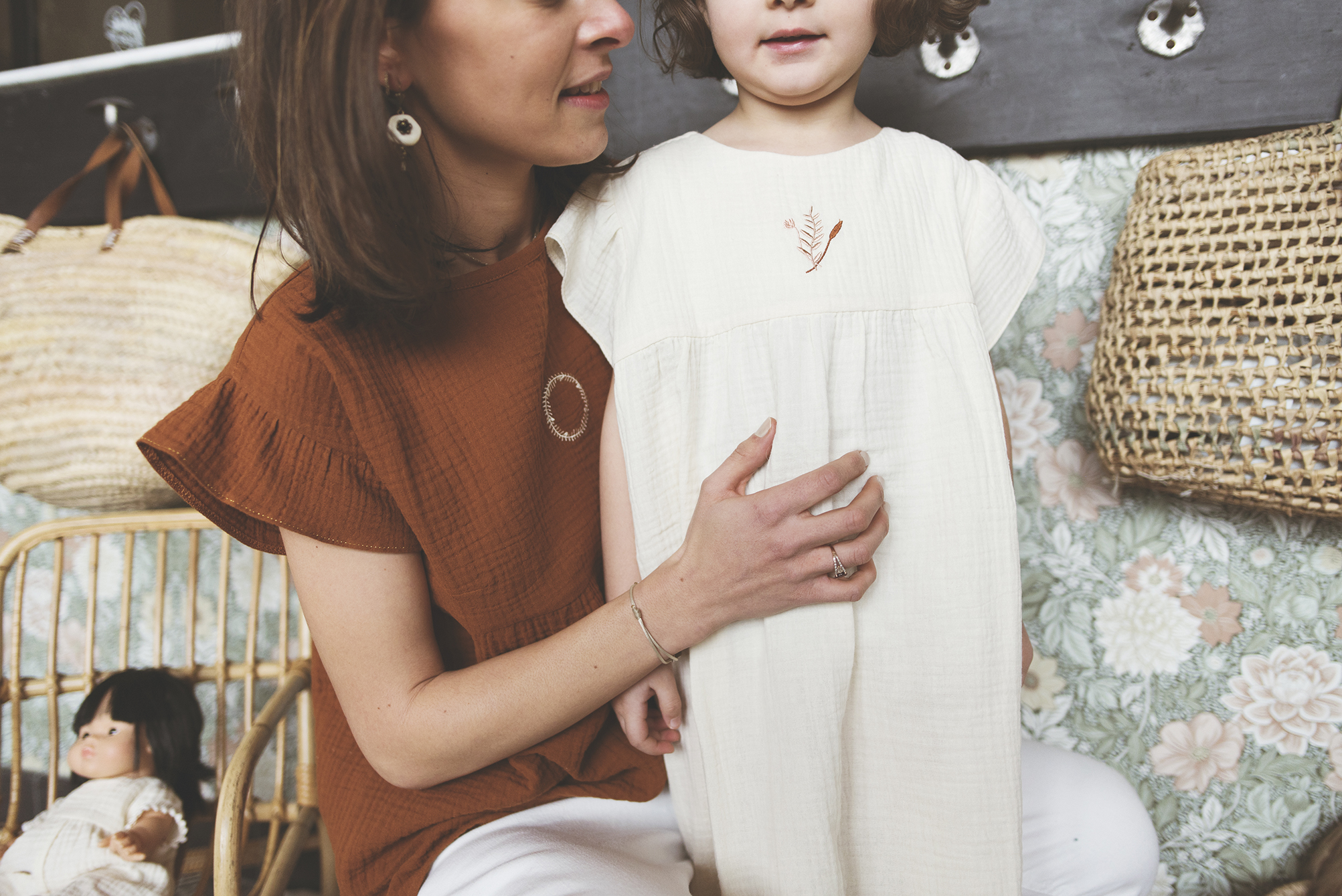 Pourquoi je vous en parle ici : Chaque mois, je vous présente une marque pour bébés, enfants, femmes enceintes, allaitantes ou tout simplement maman à la recherche de jolis accessoires et vêtements pour elle, ses kids, sa maison… Personnellement, je suis toujours à la recherche de coups de cœur pour mes filles et d’accessoires pratiques pour la vie de tous les jours. Je suis sensible aussi à l’origine des produits et un vêtement ou accessoire made in France, avec des jolies finitions, retiendra toujours plus mon attention qu’un made in China. Surtout si je dois le mettre sur le dos de mes filles ! Un sujet sur lequel j’ai beaucoup évolué ces dernières années, et notamment entre mes deux enfants. Et la crise sanitaire depuis un an n’a fait qu’accentuer ce sentiment chez moi. C’est pourquoi, je vous fais découvrir aujourd’hui la jolie marque de vêtements pour les enfants mais aussi les mamans Cocon Fair Paris. Robes, blouses, bloomers… Des créations poétiques et élégantes, avec des matières fluides et légères aux couleurs tendres, le tout avec des notes bohèmes et made in France !