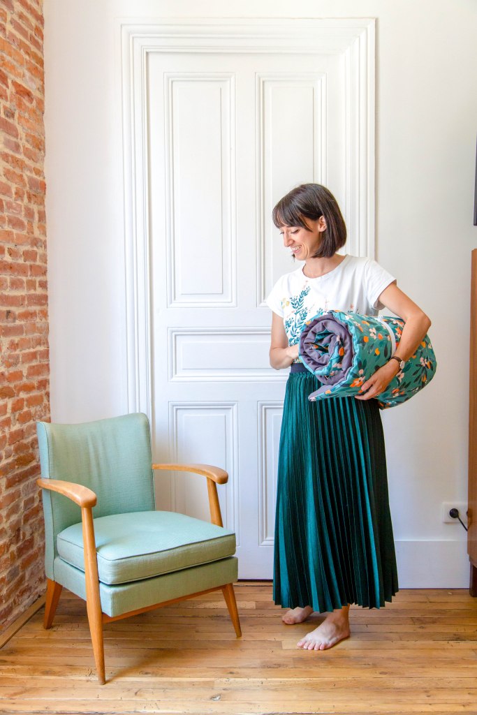 « Ma volonté c’est d’apporter de la joie de vivre, de l’énergie, à travers mes tapis et leurs imprimés, mais aussi les couleurs et le graphisme du site internet, décrit la créatrice. J’ai aussi hérité du goût de la couture de mes deux grands-mères. A travers leur souvenir, je tiens à défendre le travail manuel et local, notamment avec mon atelier de couture à Toulouse, près de chez moi. » A cela s’ajoute son souhait de produire des tapis respectueux de la planète et bons pour la santé et la peau de nos enfants.