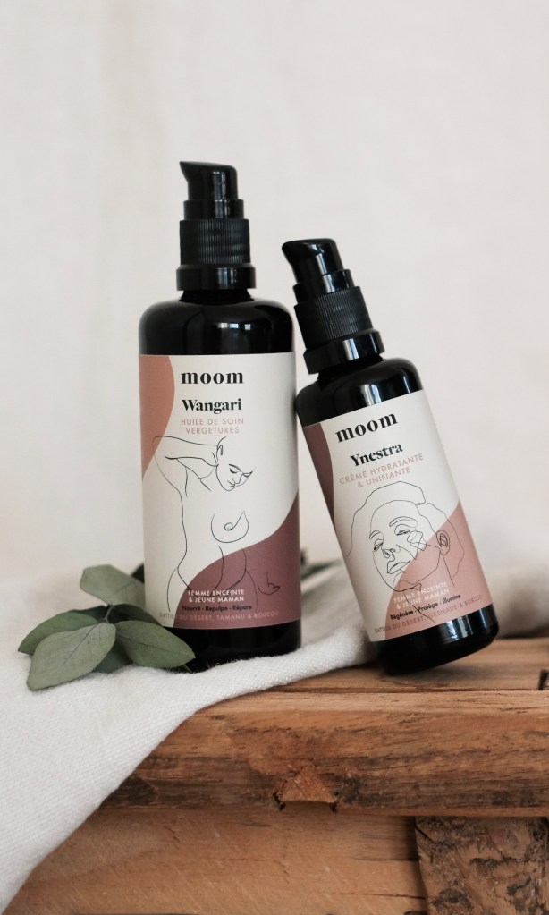 La crème hydratante et unifiante anti-masque de grossesse et l’huile précieuse anti-vergetures de la marque Moom, une jolie marque dédiée à la femme et à la grossesse dont je vous ai déjà parlée pour ses nombreuses vertus. Fabriqués en France, ses produits sont élaborés avec des ingrédients naturels et biologiques, offrant ainsi une formule saine et respectueuse de votre peau. Gage de qualité, les formules sont également testées et garanties sans perturbateurs endocriniens, sans parfum et sans huiles essentielles. Le petit plus éco-responsable ? Leur emballage en flacon de verre ultraviolet, réutilisable et recyclable, permet de préserver efficacement les actifs à l’intérieur tout en minimisant l’impact sur l’environnement.