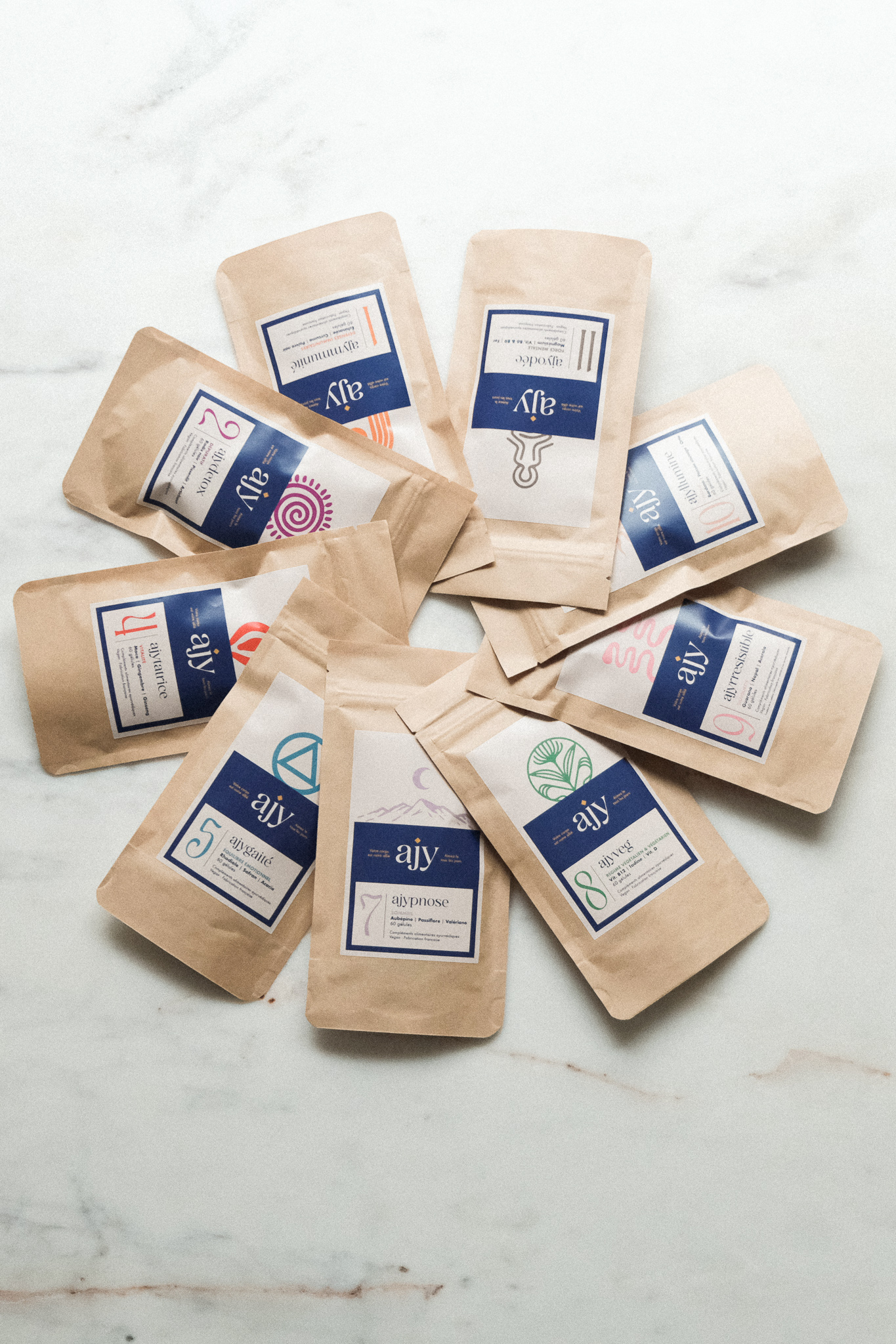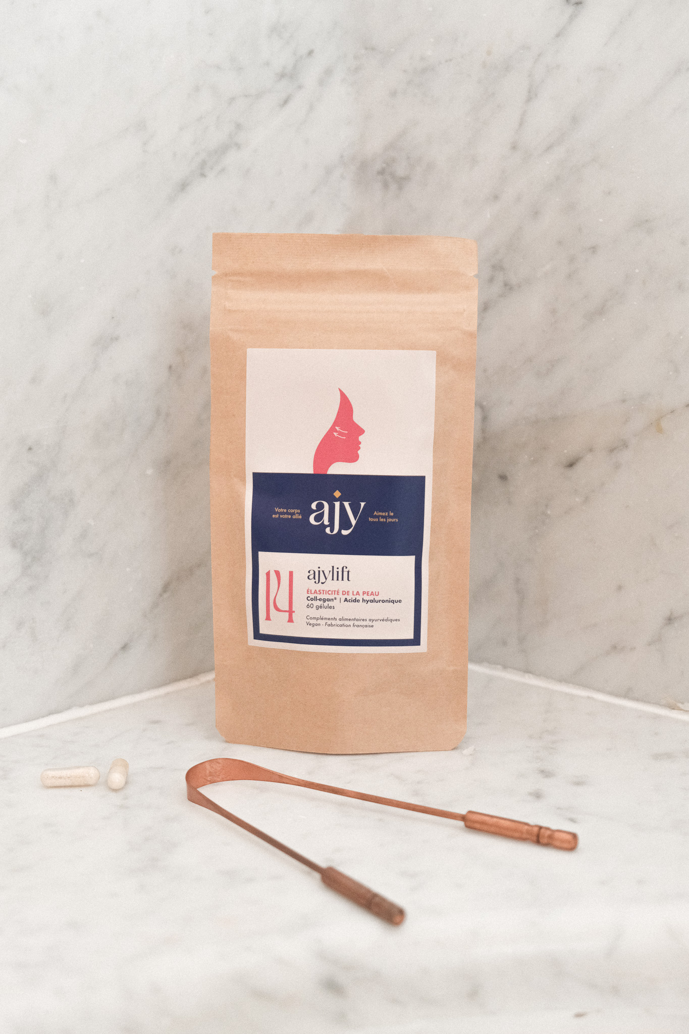 On a lancé AJY – pour Ayurvéda, Yoga, Joie mais aussi pour mon ADN et mes racines : Ava et Jim mes enfants et Yvette ma grand-mère – en décembre 2022. En deux ans, nous avons lancé 20 gammes. Tous nos compléments sont certifiés écocert et il y en a beaucoup qu’on peut prendre en étant enceinte. Pour autant, on veut couvrir tous les déséquilibres et tous les publics, les femmes, mais aussi les ados et les hommes. La doctrine de l’ayurvéda c’est «prévenir pour éviter de guérir». C’est aussi celle de nos compléments.