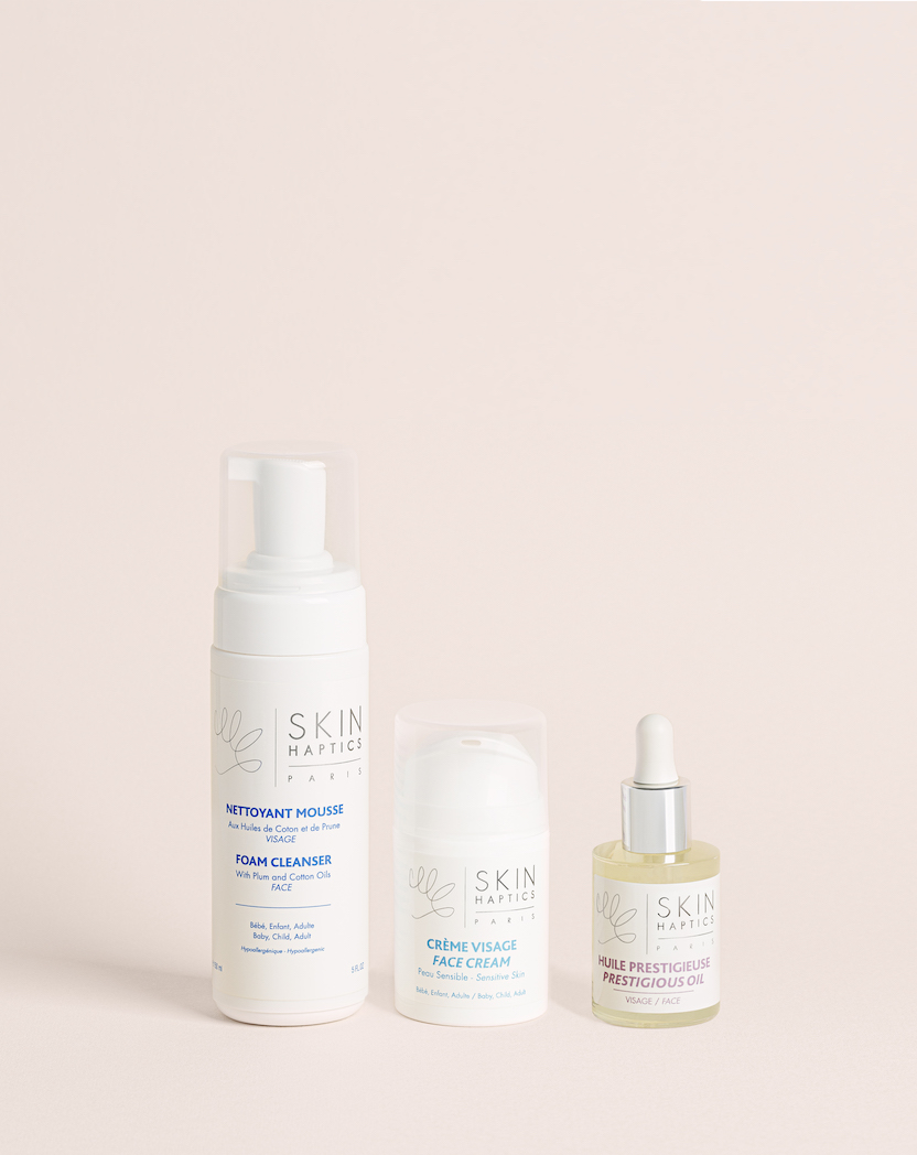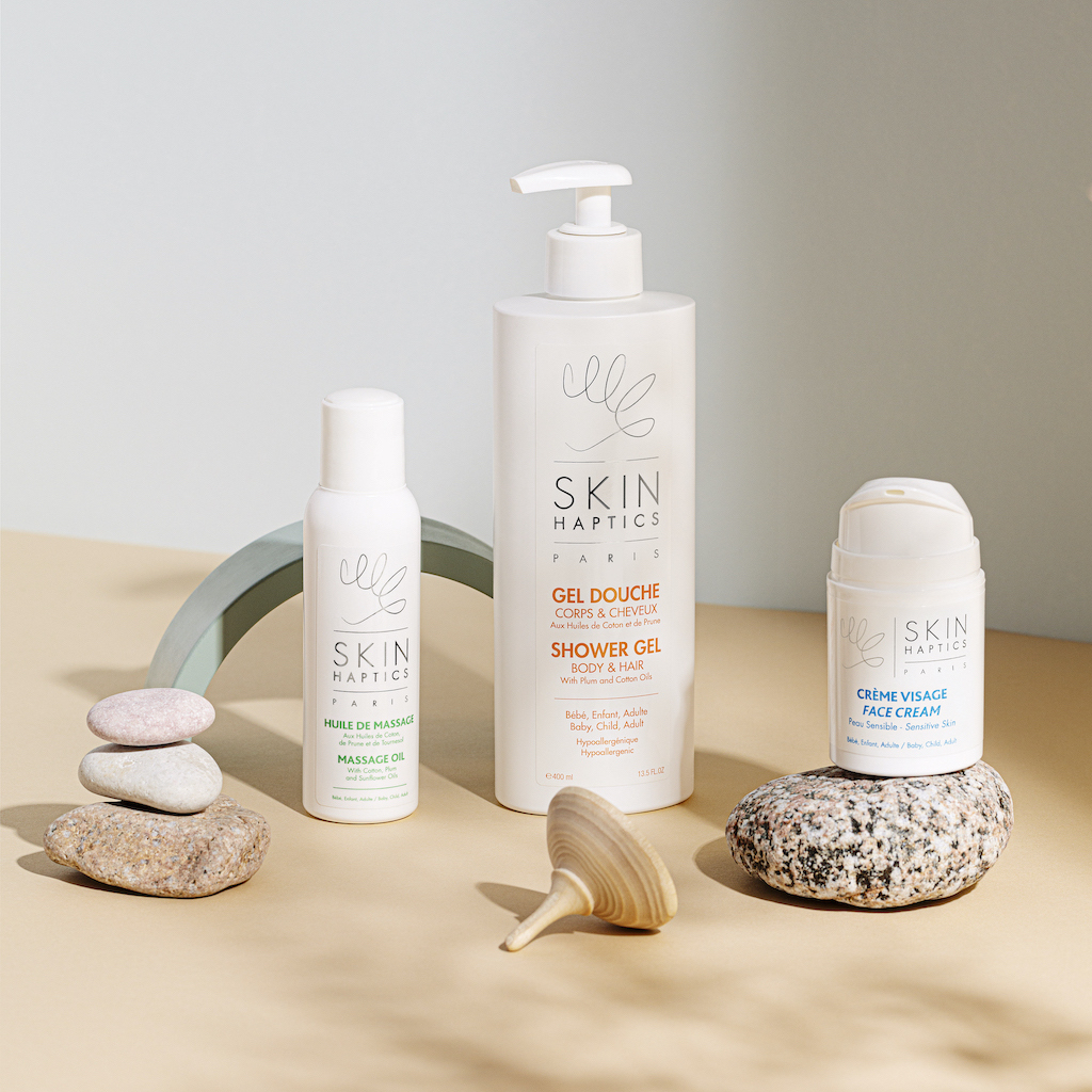 Skinhaptics, c’est LA marque de soins pensée pour toute la famille. Plus besoin de multiplier les achats en fonction des âges de chacun, les produits Skinhaptics sont adaptés dès la grossesse et la naissance de bébé. Clean, écologiques et économiques, ils sont tous élaborés à partir d’huile de coton et de prune bio, sans allergène, vegan et noté 100% sur Yuka.